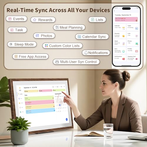 [lnstant Setup & Auto-Sync] Simply plug in, connect to Wi-Fi, and sync your favorite calendars (Google, iCloud, Outlook, Cozi, and Yahoo.) in minutes, All events and chores update automatically across devices- effortless and always up to date.