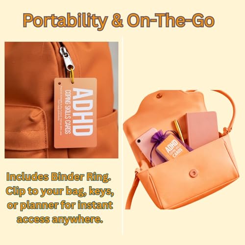 PORTABLE “ON-THE-GO” DESIGN WITH BINDER RING – Designed for real-world accessibility, each card features a pre-punched hole and includes a sturdy metal ring. Instead of keeping your tools hidden in a box, you can curate a personalized set of daily strategies to clip onto a backpack, keychain, or planner. This visual accessibility ensures your coping skills are always within reach whenever anxiety or distraction strikes.