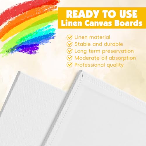 ã€ÂProfessional Quality】: The surface of the painting canvas is smooth and the texture is delicate. The linen canvas board is stable and durable, acid-free, and can maintain bright colors for a long time, making it very suitable for professional artists to create.