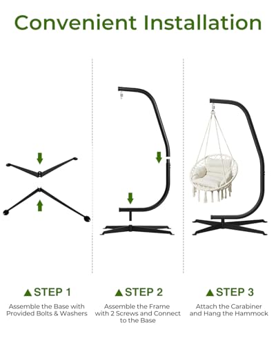 Easy Assemble: The hanging chair stand is easy to assemble, with the combination of installation instructions and the additional accessory pack, You’ll complete the installation in very little time, and have more time to enjoy the hammock stand