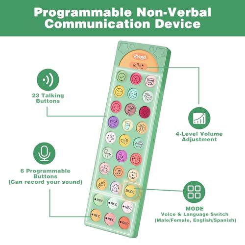 23 Easy To Remember Talking Buttons- Our AAC device for speech comes with 23 pre-installed instructions in a picture and color format that makes it very easy to keep up a correspondence simple, but essential instructions such as yes, no, I’m thirsty, I’m sleepy, it’s too loud and plenty of more, Compared with other competing products, more talking buttons can better meet day-to-day needs