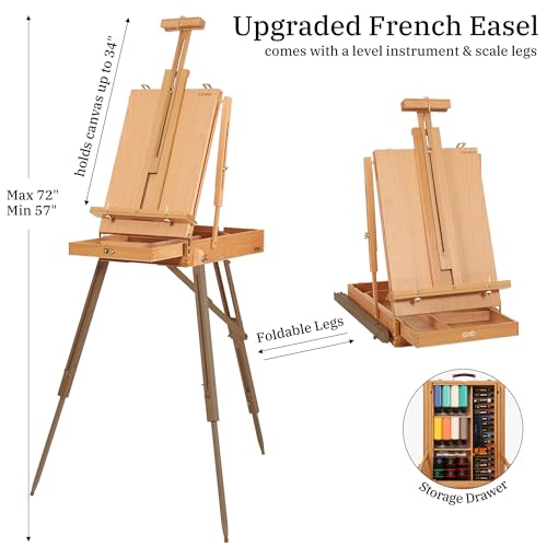 DUAL VERSATILE EASELS: Floor Stand & Easel Box: Unleash your art indoors or outdoors! Includes a professional French easel with ample storage for plein air sessions, plus a lightweight aluminum tripod easel with carry bag for portable use. Both easels offer stability, adjustable angles, and versatility, letting you paint comfortably anywhereâ€â€from studios to the field.